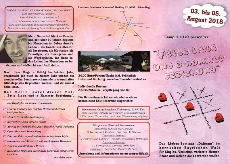 Dann komm vorbei zum Liebes - Seminar "dahoam" im Bayrischen Wald für Singles, Verliebte, verletzte Herzen, Paare und welche die es werden wollen!
